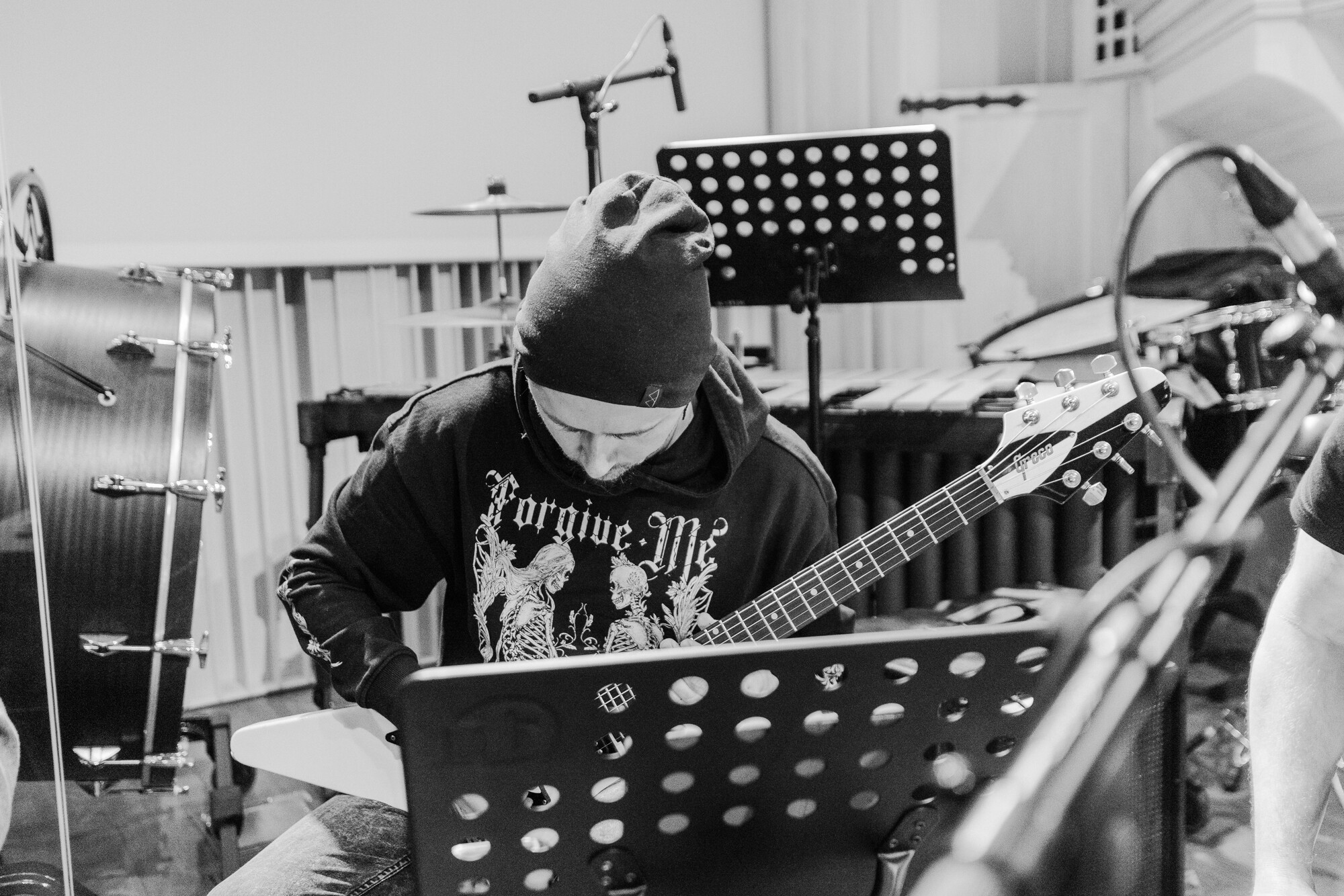 Djentle // Bruthall is an innovative composition in which I explore the boundaries of contemporary classical music and metal. It is written for the full lineup of Spółdzielnia Muzyczna contemporary ensemble, with the addition of two soloists: Wojciech Jeliński, an outstanding trombonist, and Łukasz “Dzvon” Cyndzer, a renowned guitarist from the metal scene (including bands such as Acid Drinkers and Truism). The sound of the ensemble and soloists is immersed in a multichannel electronic layer.